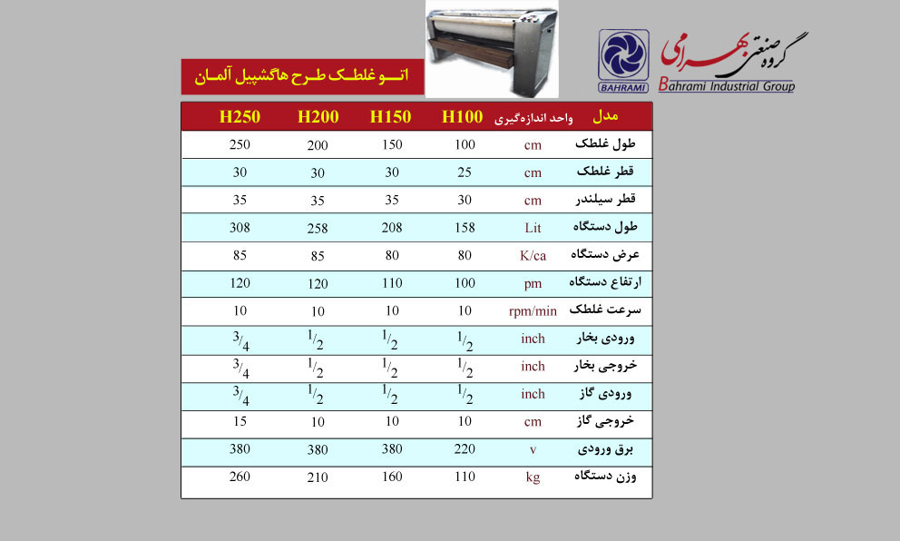 گروه صنعتی بهرامی افتخار دارد با تکیه بر تکنولوژی جدید و استفاده از تجهیزات مدرن تولید اطو غلطک صنعتی با کیفیت قابل رقابت با محصولات مشابه خارجی به شما مصرف کننده عزیز عرضه دارد.