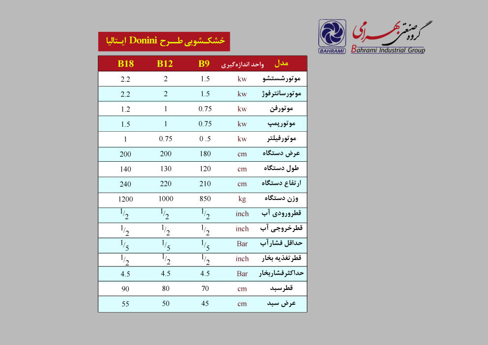 - تمامی قطعات اعم ازدیگ، سبد، لولهها، جداکنندهها، کانال، تصفیه و فیلتر که در تماس با بخار آب از نوع استيل 304 ميباشد.